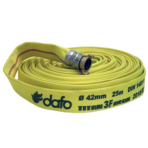 Titan är en robust, helsyntetisk vit brandslang som uppfyller alla krav enligt DIN 14811. Ytterslangen är av slitstark syntetfiber som invändigt är belagd med EPDM-gummi. Slangen är smidig, lättpackad och har höga sprängvärden.