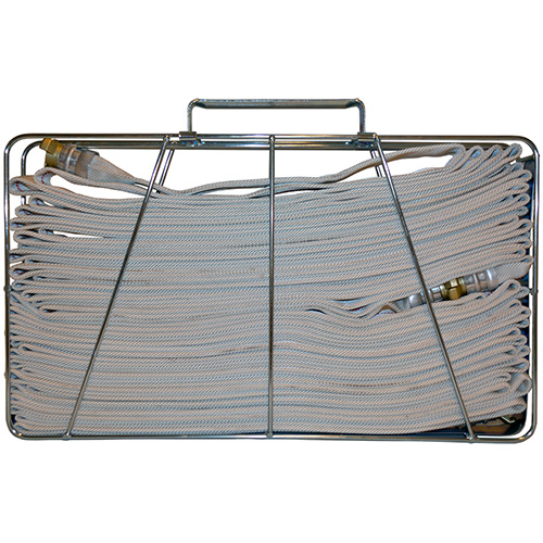 Slangkorgarna har täckande handtag som håller slang och kopplingar på plats även med korgen på högkant.