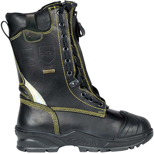 Anatomisk utformad fotbädd. Dragkedja för snabb stägning vid larm. Flamsäker snörning.
