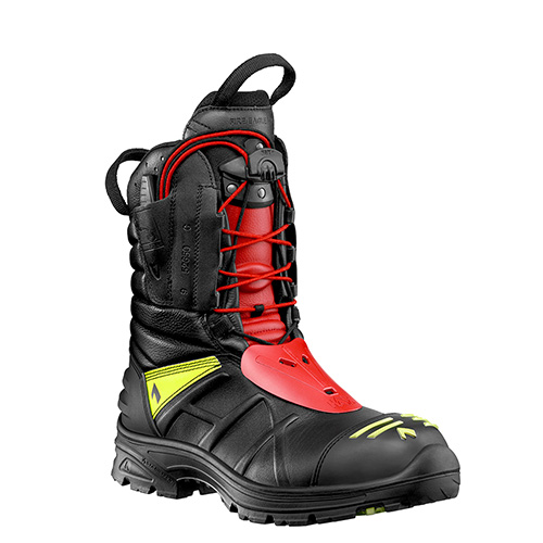 Lightweight rubber/PU sole in a sports style with sturdy road/rough terrain profile and enhanced toe-to-heel support; wear-resistant with excellent anti-slip properties - even in cold weather. The lightweight PU shock absorption wedge provides extra walking comfort and excellent thermal insulation. The flame-resistant outer sole is non-marking according to EN 15090:2012 and offers excellent resistance against heat, oil and fuels. Its bright yellow signal marks are visible even through thick smoke.