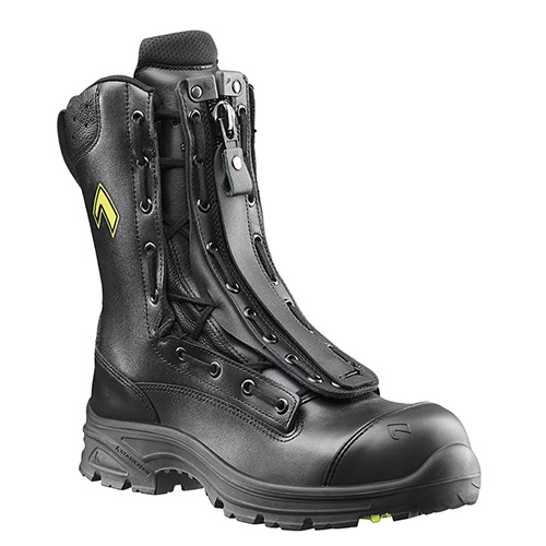 Lightweight rubber/PU sole in a sports style with sturdy road/rough terrain profile and enhanced toe-to-heel support; wear-resistant with excellent anti-slip properties - even in cold weather. The lightweight PU shock absorption wedge provides extra walking comfort and excellent thermal insulation. The flame-resistant outer sole is non-marking according to EN 15090:2012 and offers excellent resistance against heat, oil and fuels. Its bright yellow signal marks are visible even through thick smoke.