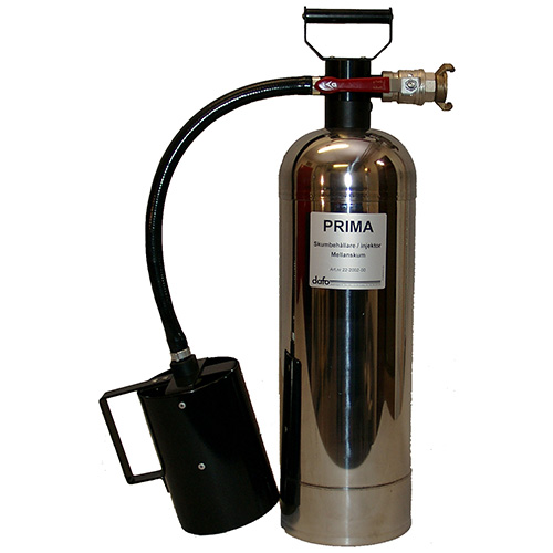 Prima skumbehållare, tillverkad av rostfritt stål, är det idealiska redskapet vid skuminsats där situationen inte kräver en större skummängd.