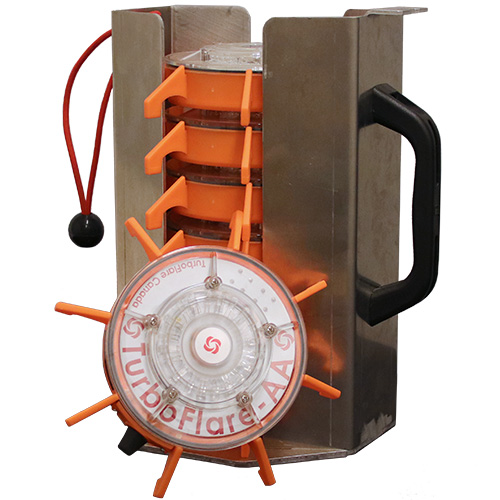 Turbo Flare 360 levereras antingen styckvis eller i en metallhållare innehållande 8 st lösa Turbo Flare. Perfekta att märka ut plats för t ex helikopterlandning.