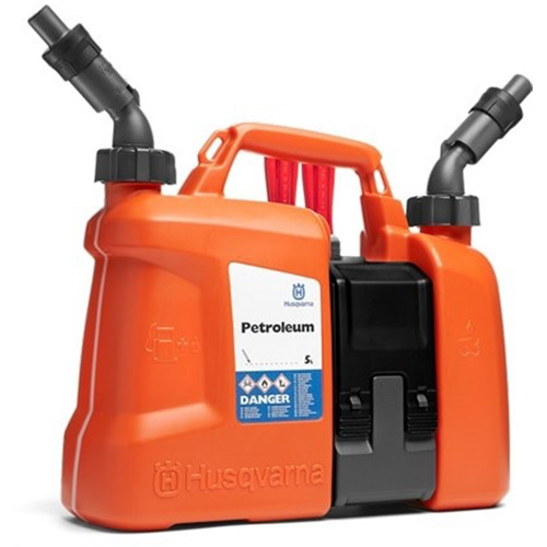 Volymförhållandet mellan bränsle och kedjeolja har optimerats så dunken rymmer 5 liter bränsle och 2,5 liter kedjeolja. Godkänd enligt UN rekommendationer. Färg: orange.