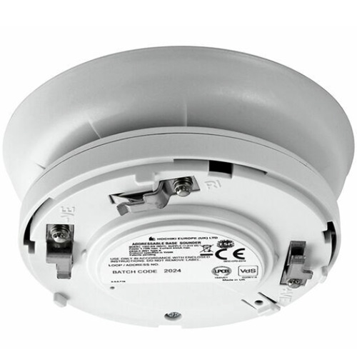 Vit sockelsirén Prodex. Installeras på standardsockel eller isolatorsockel. Reglerbar ljudnivå mellan 50 – 98 dB.