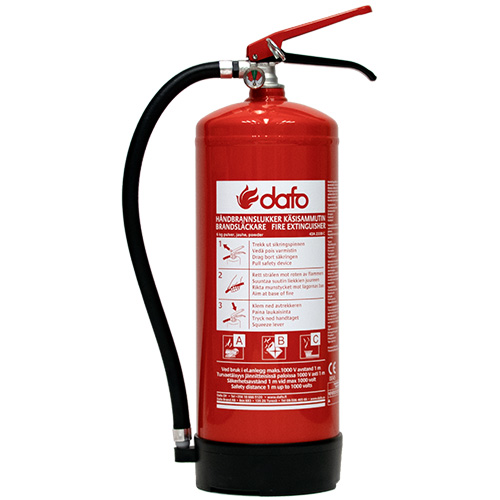 Fylld med 6 kg ABC-pulver. Inkl vägghängare
