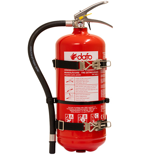 Fylld med 4 kg ABC-pulver. Inkl vägghängare & slang. Packas 88 st/pall