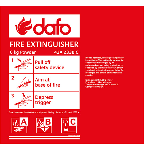 Etikett 6 kg pulver typ PDE, PDM och PD, engelsk