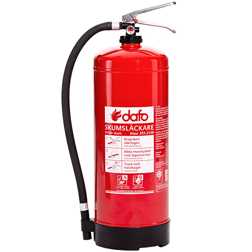 Dafo skumsläckare typ SDB 9 P är fyllda med brandsläckningsskum helt fritt från PFAS och fluortensider.