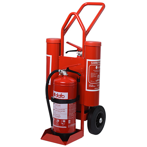 Kärra avsedd för heta arbeten och andra tillfälliga arbetsplatser. Den är försedd med brandfilt och handskar, samt 2 st 6 kg pulverbrandsläckare enligt försäkringsbolagens krav för Brandfarliga Heta Arbeten.