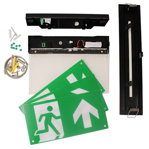 Armaturen levereras med 4 st piktogram samt en vit baksida, som används vid enkelsidigt montage. Armaturen kan fästas i tak eller på vägg. I leveranssatsen ingår också en insats för infällt montage samt en vajersats med fästen för pendelmontage. Det gör det enkelt att beställa och lagerhålla armaturen. Den är också praktisk att ha med i servicebil eftersom den många gånger fungerar som bra utbytesarmatur för andra modeller.