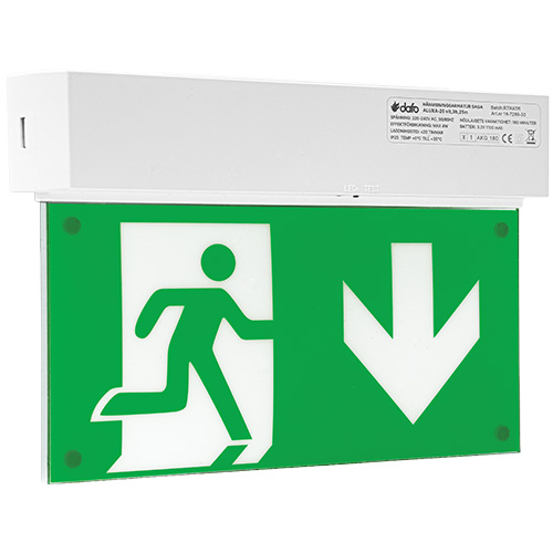 Hänvisningsarmatur med självtest. Siktavstånd 25 m. 4 st piktogram