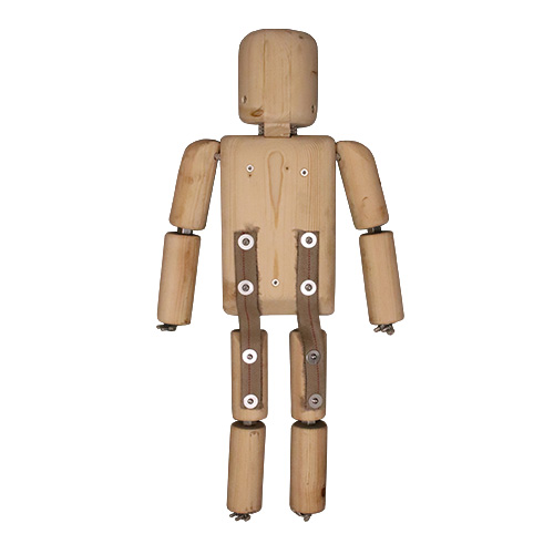 Övningsdockorna Hasse och Kalle är tillverkade av solitt trä med naturtrogna leder i knän, armbågar, höft och huvud, så att dockorna ska upplevas så realistiska som möjligt under övningarna.