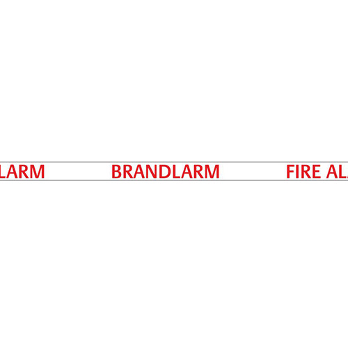 Dekal "Brandlarm Fire alarm" för sockelsiren 310×8 mm transparent med röd text