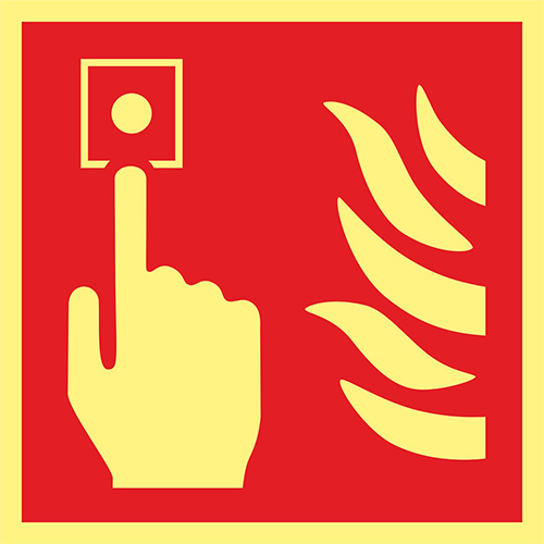 Skylt Brandlarmknapp 150×150 mm färgefterlysande