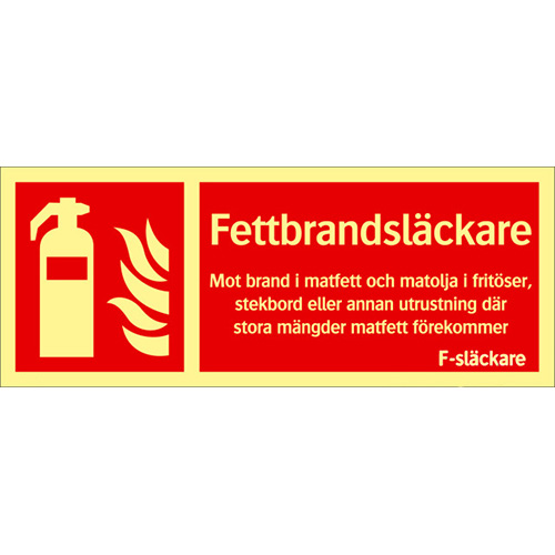 Tilläggsskylt Fettbrand 250×100 mm, färgefterlysande