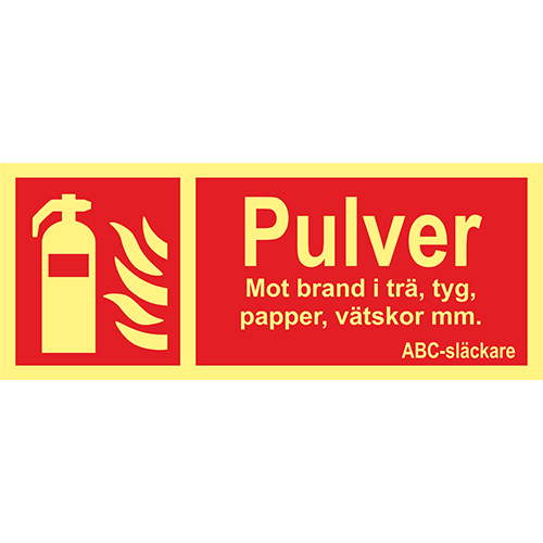 Skylt Pulver tilläggsskylt 250 x 100 mm ISO Aluminium färgefterlysande