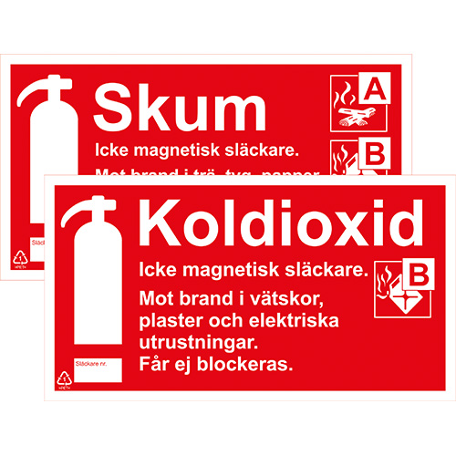 Skylt Skum/CO2 icke magnetisk 200×110 mm dubbelsidig, plast
