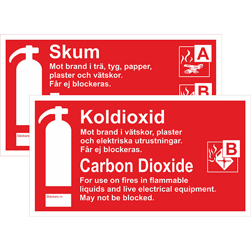 Skylt Skum/CO2 svensk/engelsk 200×110 mm, dubbelsid, plast