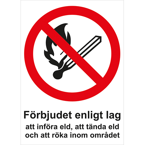 Skylt "Förbjudet enligt lag att införa eld...", A4, aluminium