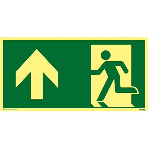 Utrymningsväg pil upp 200×100 mm efterlysande aluminium