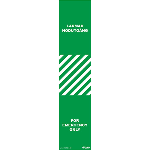 Dekal för utrymningshandtag "Larmad Nödutgång" 65 x 300 mm grön/vit