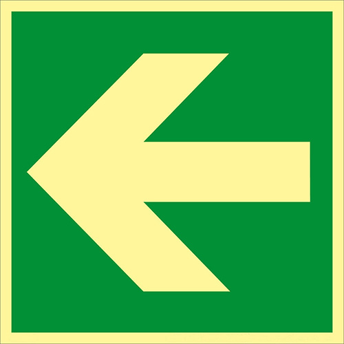 Utrymningsvägar ska vara markerade med varselskylt. Det gäller både ordinarie väg ut och alternativ väg. Skyltar ska också placeras i korridorer och gångstråk för att visa riktningsförändringar eller vägen till en utrymningsdörr.