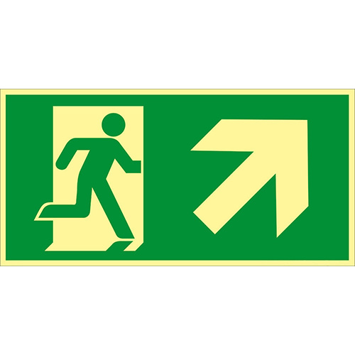 Skylt utrymningsväg pil upp höger 400 x 200 mm, färgefterl.