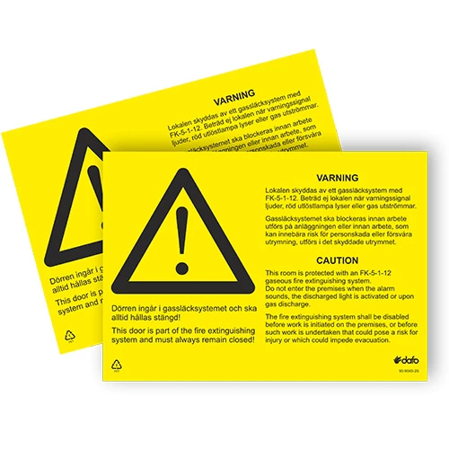 55-9045-25Skylt FK-5-1-12 in- och utsida dörr A4, dubbelsidig, plastVarningsskylt dörr -