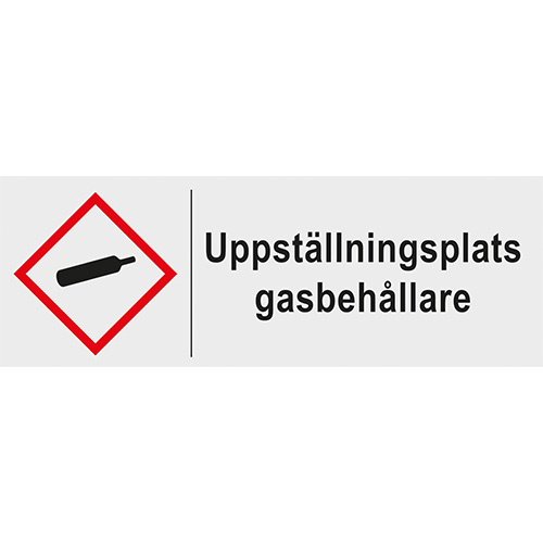 Skylt "Uppställningsplats Gasbehållare" 420 x 148 mm, aluminium Reflex