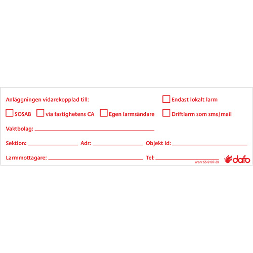 Dekal "Anläggningen vidarekopplad till" 145 x 45 mm