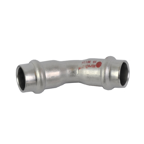 V-koppling 45 gr, 2 muffar, rostfri, P15 mm